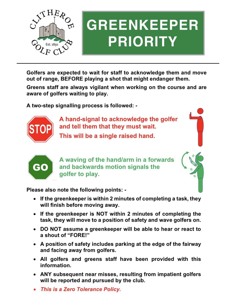 If you cannot see the copse of trees, to the right of the 1st fairway from the 1st tee, then the course is closed and golfers are prohibited from venturing onto the course until the course is reopened. “Course closed” signs will be displayed on tees that are in close proximity to the clubhouse.
